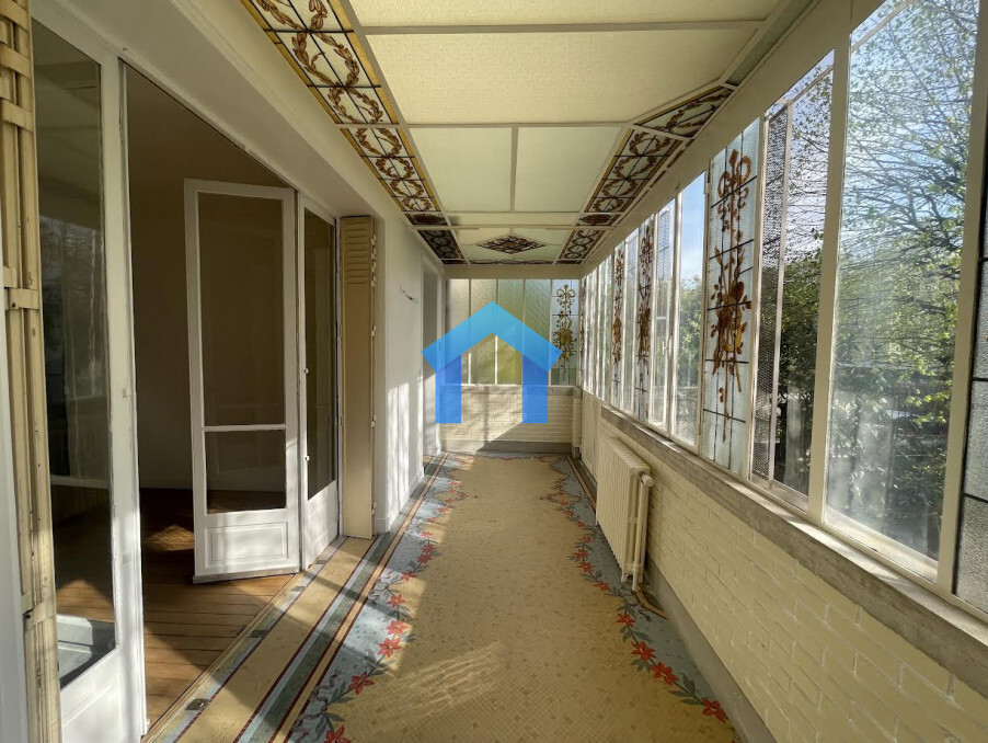 Dès l'entrée par la véranda, sublimée par des vitraux et un sol en mosaïque, vous serez immédiatement charmé par les volumes généreux, la luminosité et le caractère authentique des lieux : parquets d'époque, cheminées anciennes, hautes fenêtres, radiateurs en fonte fleuris et hauteurs sous plafond remarquables.