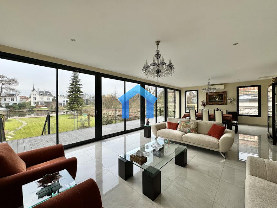 QUARTIER DU PETIT LAC - Nous vous invitons à découvrir cette somptueuse demeure en meulière, véritable propriété d’exception située sur les rives du petit lac. Édifiée sur un terrain d’environ 1 450 m², elle jouit d’un cadre enchanteur et d’un accès direct au lac grâce à son ponton privatif.